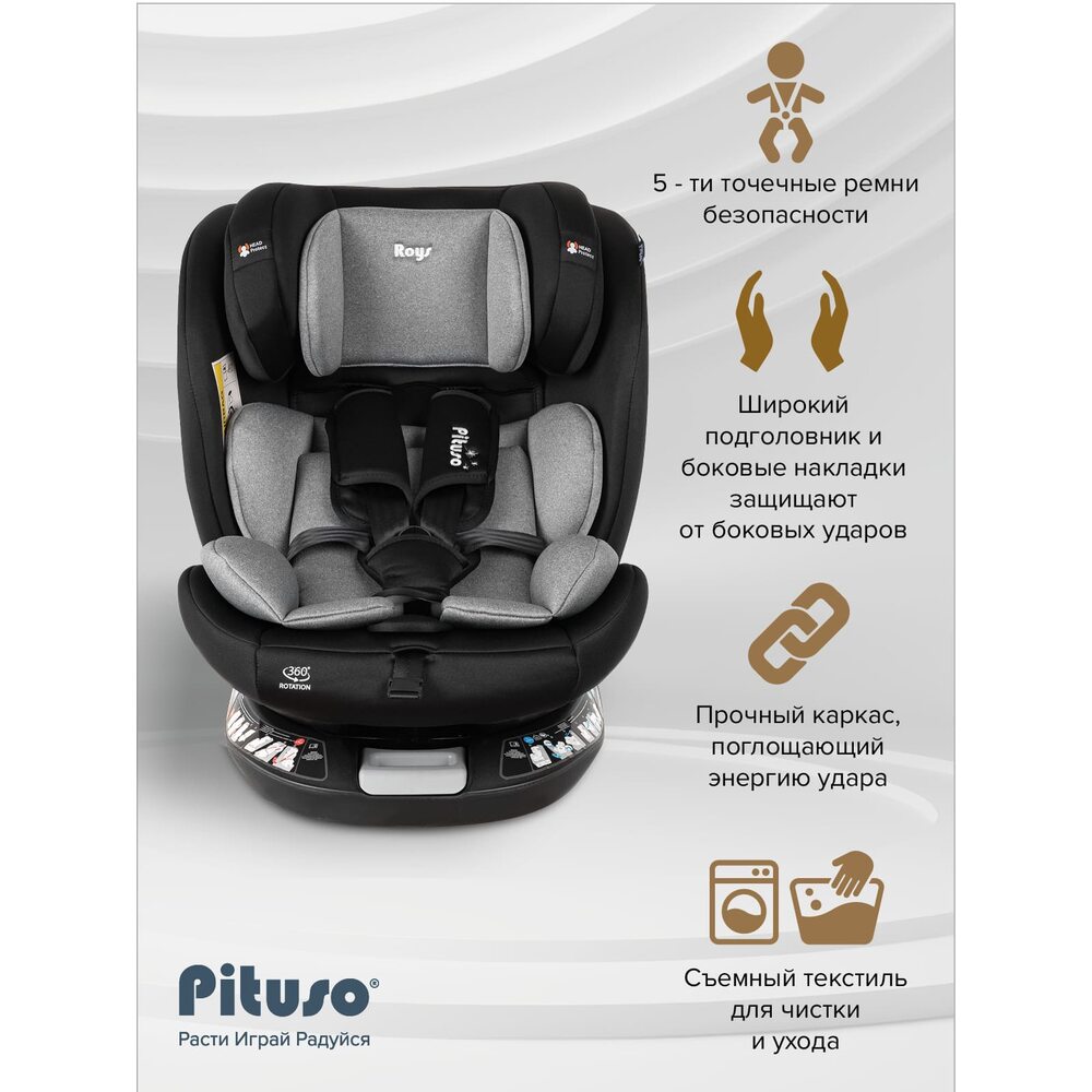 Детское автокресло 0-36 кг Pituso Roys + Black grey