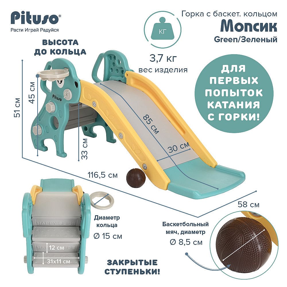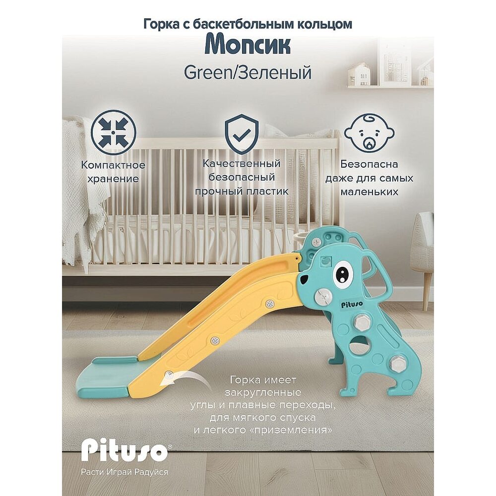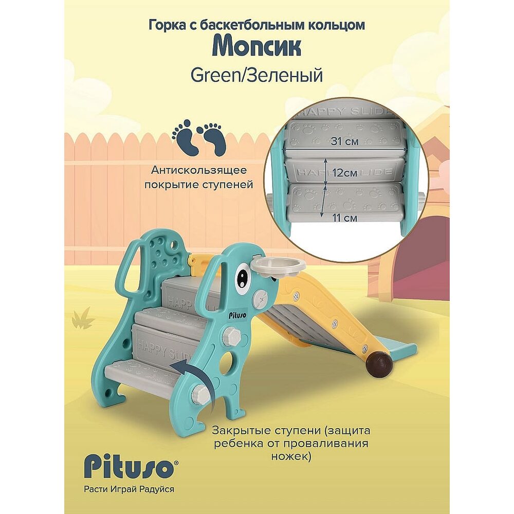 Горка Мопсик PITUSO с баскет. кольцом Green