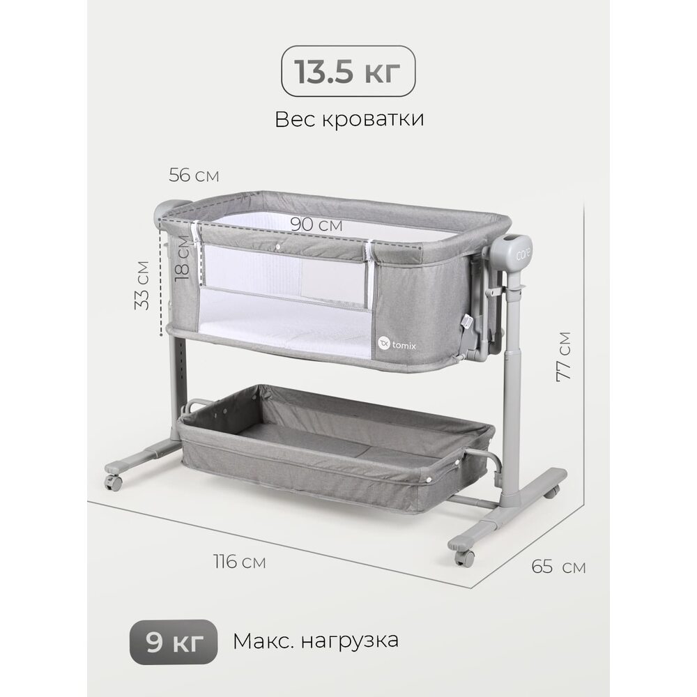 Приставная кроватка с электроукачиванием TOMIX Care